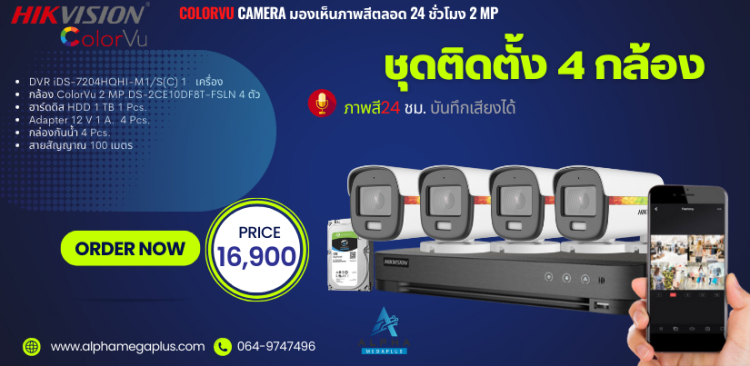 ชุดราคา4 กล้อง พร้อมติดตั้งกล้องวงจรปิด HIKVISION ความละเอียด 2 ล้านพิกเชล ภาพสี24ชม.บันทึกเสียงได้