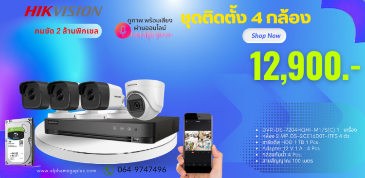 ชุดราคา 4 กล้องพร้อมติดตั้งกล้องวงจรปิด HIKVISION ระบบ HD TVI ความละเอียด 2 ล้านพิกเชลบันทึกเสียงได้